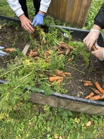 Учні 9-го класу разом із вчителями біології вийшли на шкільні екогрядки, щоб зібрати щедрий урожай — соковиту моркву та стиглу квасолю.Зібраний урожай діти занесли до їдальні, де кухарі приготують вітамінний салат з наших екогрядок.Сонце лагідно світило, повітря пахло свіжою землею, а на обличчях дітей сяяли усмішки.
